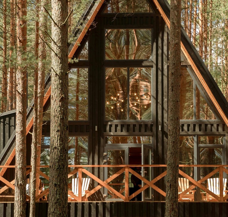 Our cabins blend Scandinavian minimalism with the warmth of organic textures – oak, stone, linen, and glass. There are no distractions, only the rhythm of the forest – morning mist, the sound of the fireplace, and the scent of pine.